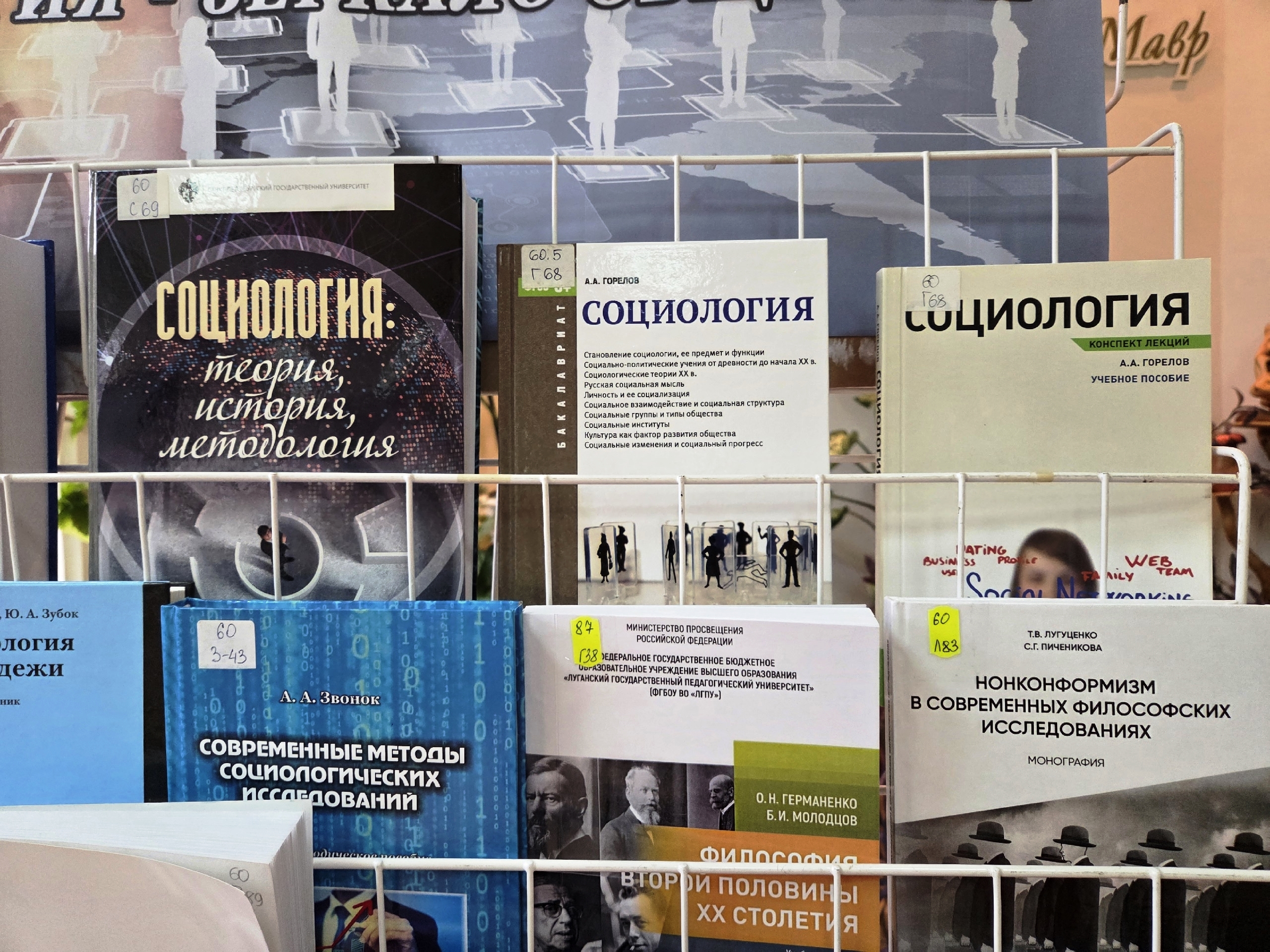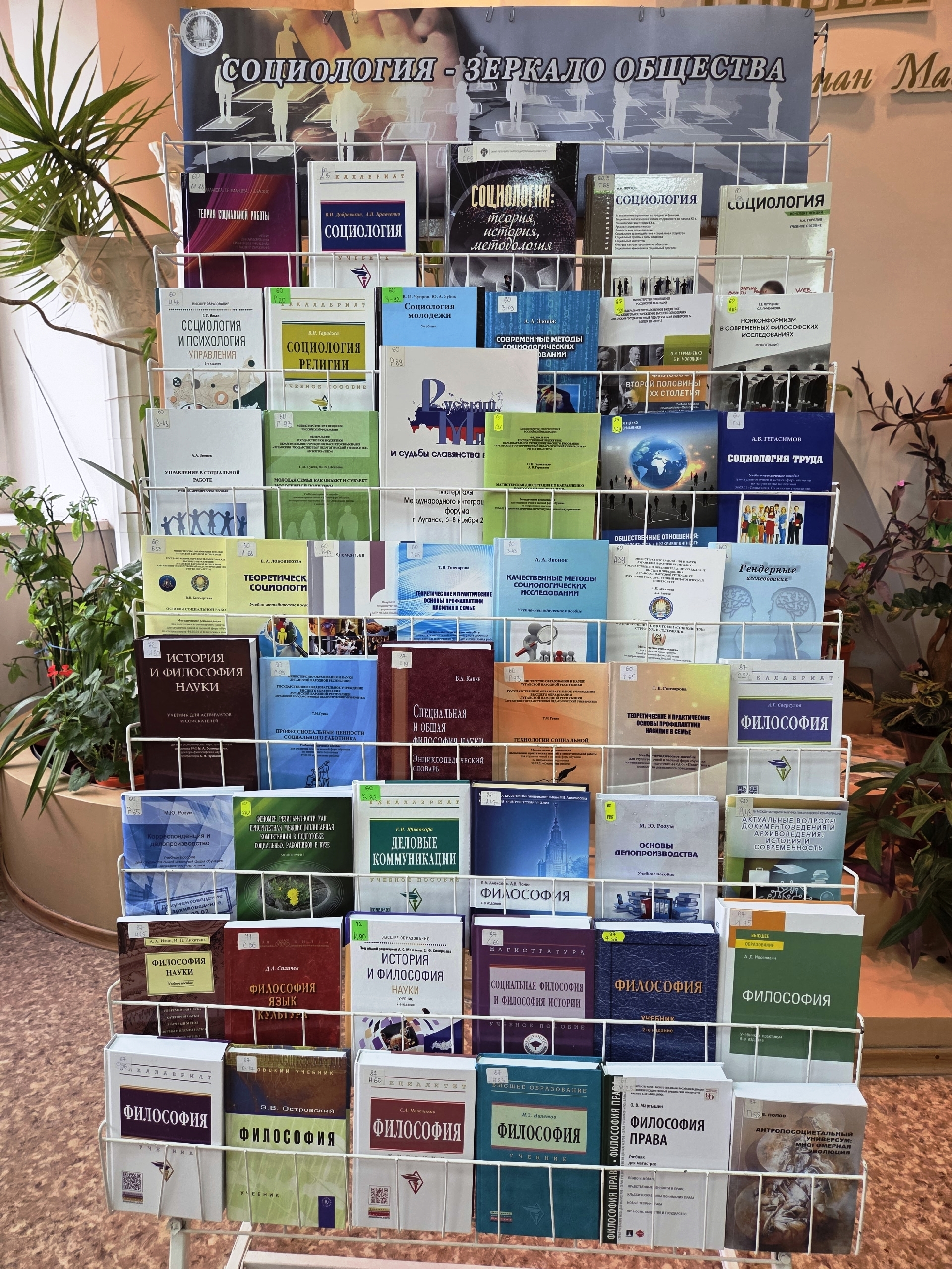 Представленные на выставке материалы позволят читателям сложить целостную и объемную картину социального мира, заглянуть в суть явлений и процессов, увидеть причинно-следственную связь между событиями, происходящими в современном обществе, также на выставке представлена литература по философии.